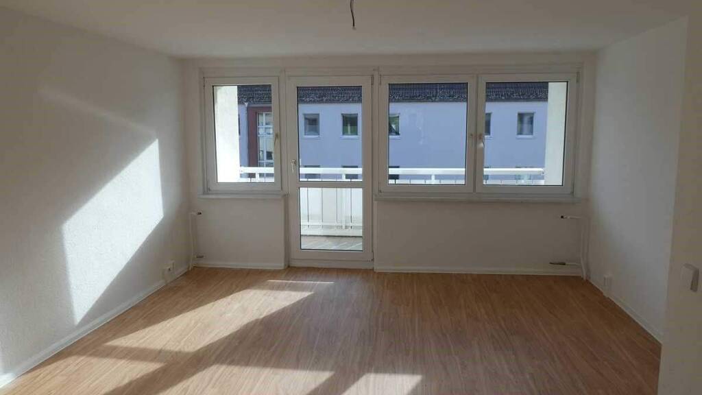 Ausstattung: 4 Räume / großzügiger Balkon / separate Küche / Bad mit Wanne und Fenster / PVC-Belag in Laminat-Optik