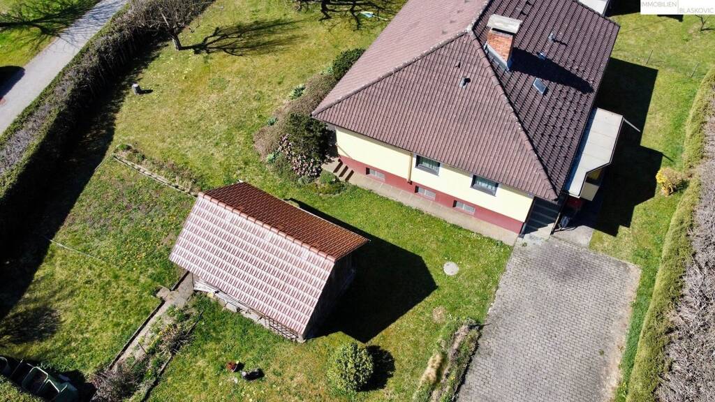 Die Einfahrt ist gepflastert und bietet Platz für das KFZ. Außerdem befindet sich noch ein Geräteschuppen am Grundstück