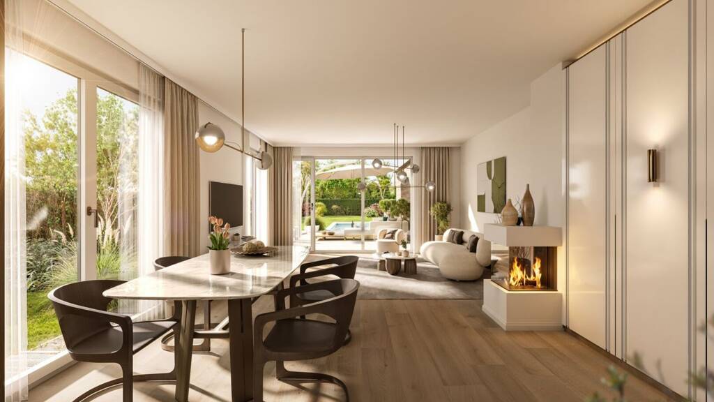 Der offen gestaltete Wohn- und Essbereich bildet das Herzstück des Hauses und öffnet sich direkt zur Terrasse und in den Garten. Hier entstehen fließende Übergänge zwischen Innen- und Außenraum - ideal für entspannte Alltagssituationen ebenso wie für gesellige Momente.