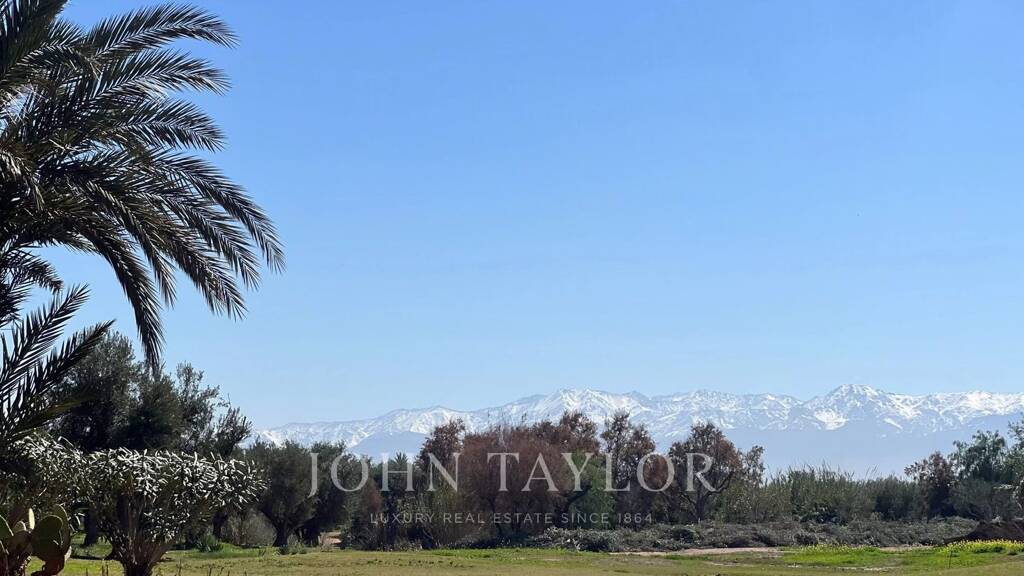 Elle comprend sur 2 niveaux: une double réception spacieuse avec 2 cheminées, ouverte sur la terrasse couverte, avec vue sur le jardin et l'Atlas, 6 belles suites dont 1 à l'étage avec terrasse, une vaste cuisine parfaitement équipée, un salon TV et logements pour le personnel, 2 patios ombragés, ainsi qu'un très grand rooftop.