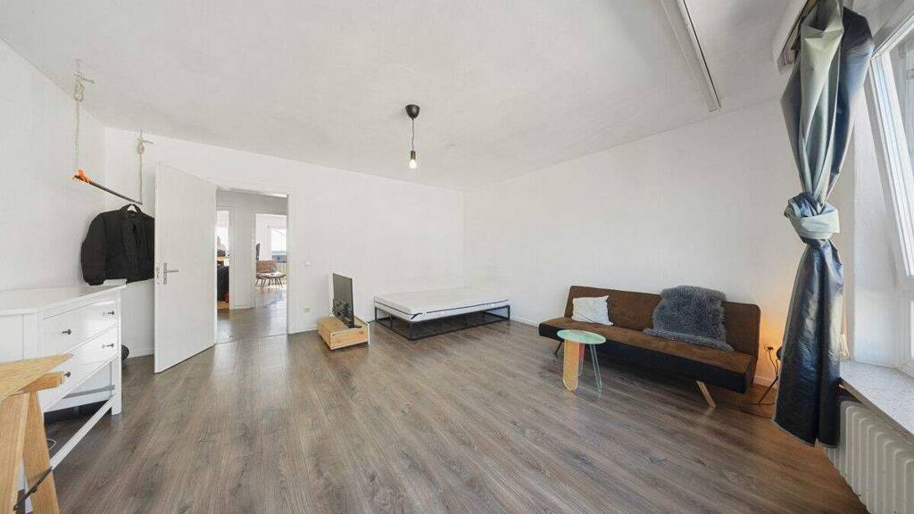 Der großzügige Wohnbereich bildet das Zentrum der Wohnung und bietet ausreichend Platz für eine gemütliche Wohn- und Esssituation. Große Fensterflächen sorgen für eine angenehme Helligkeit und schaffen eine freundliche Wohnatmosphäre.