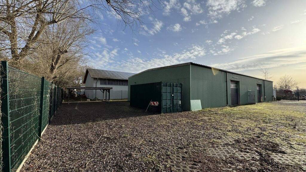 Die Halle verfügt über eine Gesamtfläche von ca. 450 m² und ist in Trapezblechbauweise errichtet. Weiterhin ist die Halle nicht gedämmt und unbeheizt und eignet sich daher sehr gut als Lagerfläche.