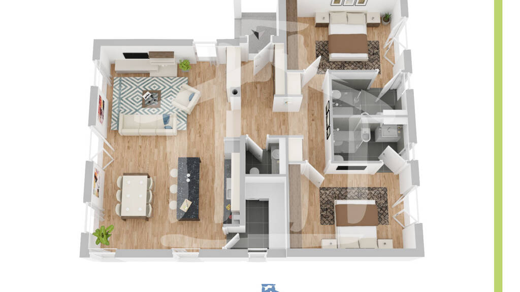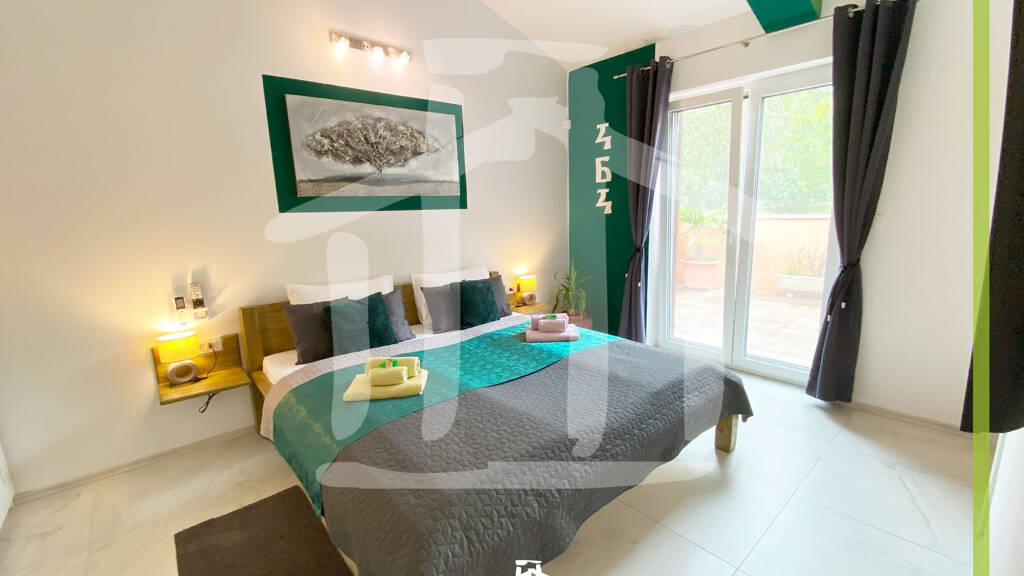 Zwei gemütliche Schlafzimmer mit eigenen stilvollen Badezimmer mit hochwertigen Armaturen und modernen Fliesen