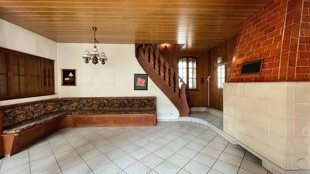 Das zweigeschossige Wohnhaus überzeugt mit großzügigem Eingangsbereich samt Kamin, Wohnraum und Küche. Im Obergeschoss befinden sich vier Zimmer und ein Bad, das Dachgeschoss bietet zusätzliche nutzbare Räume.