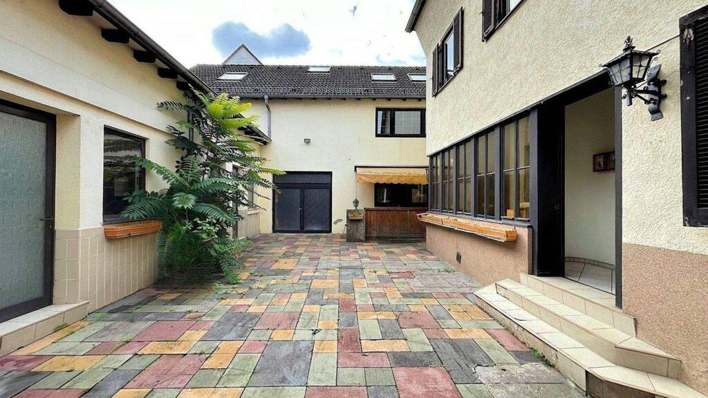 Diese außergewöhnliche Liegenschaft ist hofartig angelegt und besteht aus einem Wohnhaus, einem Bürotrakt sowie einer ehemals gewerblich genutzten Halle. Alle Gebäudeteile sind in L-Form um einen abgeschlossenen Innenhof gruppiert, der über ein hohes elektrisches Rolltor von der ruhigen Zufahrtsstraße aus erreichbar ist und mehrere Stellplätze bietet.