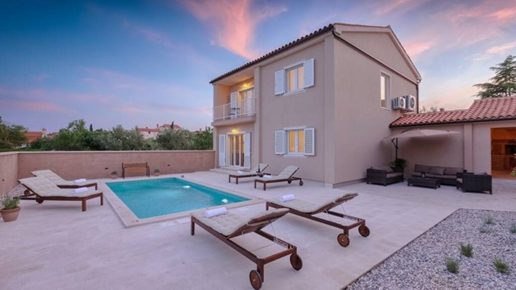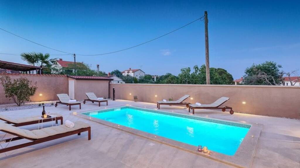 Energieausweis: ZU DIESER IMMOBILIE LIEGT DERZEIT NOCH KEIN ENERGIEAUSWEIS VOR. IN VORBEREITUNG. liegt am südwestlichen Ende Istriens, in der Nähe von Pula, auf den Hügeln und Hängen oberhalb der nördlichen Küste der Bucht von Pula. In der Römerzeit war es als "Astiniaum" bekannt. In können Sie die Pfarrkirche mit dem Glockenturm von St. Margaret, das Denkmal für die Opfer des Faschismus, die Straße namens "Saliz", den Turulu-Hügel, die Cristo-Festung auf der Prostina-Halbinsel und in der Bucht von Zunac und am Kap Guc die Überreste eines antiken Badebereichs mit einem Mosaikboden und die Überreste einer großen Wollwalzfabrik besichtigen. Eine kleine und friedliche touristische Siedlung hat sich 700 m vom zentralen Strand entfernt, umgeben von Pinienwald, entwickelt, so dass für einen Familienurlaub empfohlen wird. Direkt in finden Sie dieses schöne Ferienhaus. Es befindet sich in einer ruhigen Gegend und hat eine Wohnfläche von 180m2, verteilt auf das Erdgeschoss und den ersten Stock. Das Erdgeschoss des Hauses enthält ein Wohnzimmer mit Küche und Essbereich, ein Schlafzimmer, einen Waschraum und ein Badezimmer. Über die Treppe gelangen Sie in den ersten Stock, wo sich drei Schlafzimmer befinden, eines davon mit eigenem Bad, sowie ein gemeinsames Bad und einen Balkon. Der wunderschön angelegte und gepflegte Garten umfasst Parkplätze für zwei Autos, Grünflächen und einen 6x3 Pool mit Sonnenliegen. Neben dem Pool befindet sich eine "Chill-Zone" mit einer schön eingerichteten Taverne, die von einem Kamin geschmückt ist. Das Anwesen ist mit 4 Interesse? Bitte senden Sie uns ein VOLLSTÄNDIG augefülltes Kontaktformular zu, Sie erhalten dann umgehend ein ausführliches Exposé. ACHTUNG MAKLER: Wir freuen uns auf eine Zusammenarbeit. Alle Angaben stammen vom Verkäufer der Immobilie. Ohne Gewähr! blueHOMES AG ...die schönsten Häuser Europas...