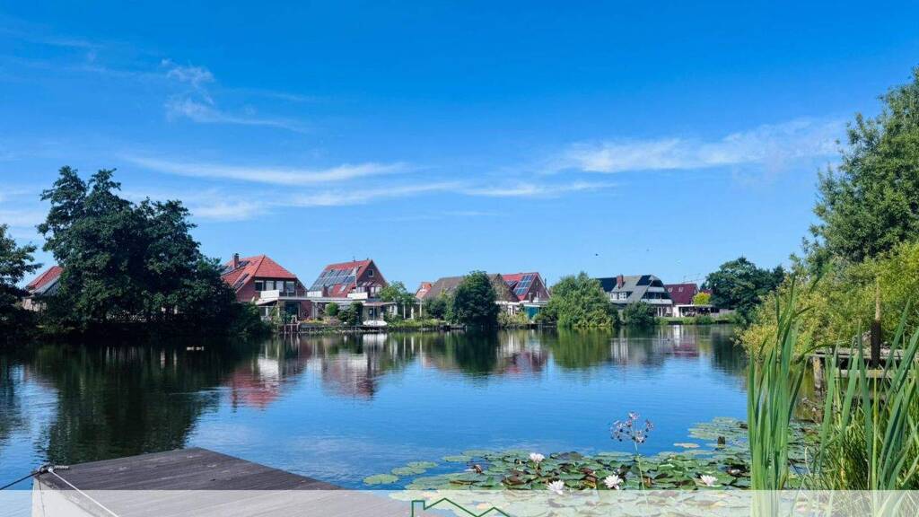 Abgerundet wird dieses Wohnungsangebot durch eine Terrasse und den gepflegten Garten mit direktem Zugang zum Kolk. Zu dem Objekt gehört ein kleines Paddelboot und die Steganlage. Das gesamte Objekt ist mit Außenjalousien ausgestattet. Das Badezimmer ist mit einer Dusche und einer Badewanne versehen.