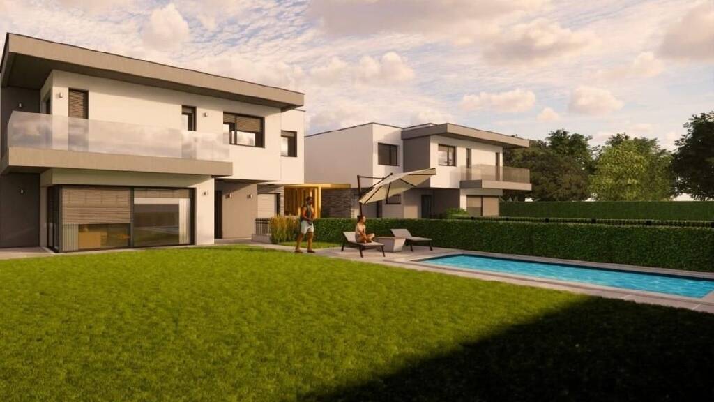 In einer ruhigen Sackgasse von Tribuswinkel entstehen zwei exklusive Einfamilienhäuser in Doppelhausbauweise, die durch ihr zeitlos-architektonisches Design überzeugen. Von außen prägen klare Linien, hochwertige Verkleidungen und viel natürliches Licht die Fassaden, die eine harmonische Verbindung aus Moderne und Wärme schaffen.