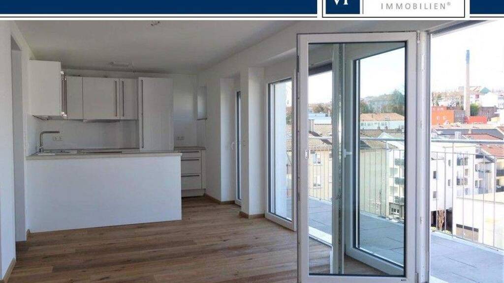 Die Wohnfläche verteilt sich auf einen großzügigen Wohn-/Essbereich mit offener Küche, einen Abstellraum, zwei Schlafzimmer, eines davon mit Ankleideraum, sowie ein großes Badezimmer. Vor allem der Wohnbereich ist besonders lichterfüllt und punktet zudem noch mit einem großen Balkon, der auch vom Schlafzimmer zu begehen ist. Die Wohnung ist modern und hochwertig ausgestattet. Eine neuwertige Küche ist ebenfalls vorhanden und im Mietpreis mit 100 Euro bereits berücksichtig.