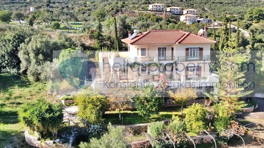 Sehr gepflegte Villa excellenter Bauqualität mit zauberhaftem Bilck auf Berg und Meer nahe Petalidi.