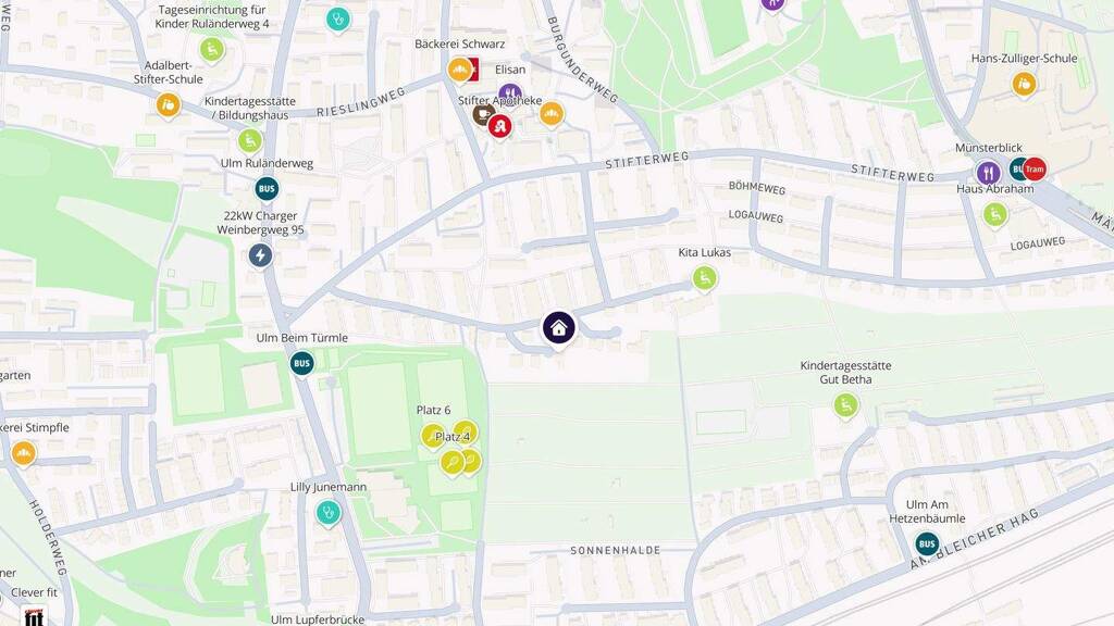 Die Lage verbindet auf ideale Weise Ruhe und gute Erreichbarkeit. Die Ulmer Innenstadt sowie Neu-Ulm sind in kurzer Zeit erreichbar - sowohl mit dem Auto als auch mit öffentlichen Verkehrsmitteln. Dadurch profitieren Bewohner von der Nähe zu sämtlichen urbanen Angeboten wie Einkaufsmöglichkeiten, Gastronomie, kulturellen Einrichtungen, Ärzten und Dienstleistungen, ohne auf ein entspanntes Wohnumfeld verzichten zu müssen.