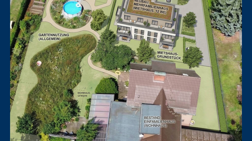 Neubau-Potenzial für MFH: Eine baufreie Teilfläche von ca. 840 m² ist bereits für die Entwicklung eines Mehrfamilienhauses prädestiniert.