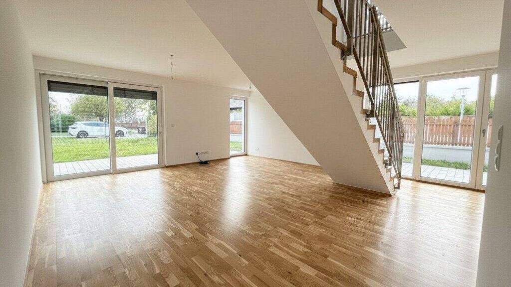 Die Häuser sind mit langlebigen Kunststoff-Alu-Fenstern und einer massiven Alu-Haustüre ausgestattet. Eine moderne, effiziente Luftwärmepumpe sorgt dabei für wohlige Wärme durch eine Fußbodenheizung. Zur Abschattung wurden außerdem elektrische Rollläden installiert.