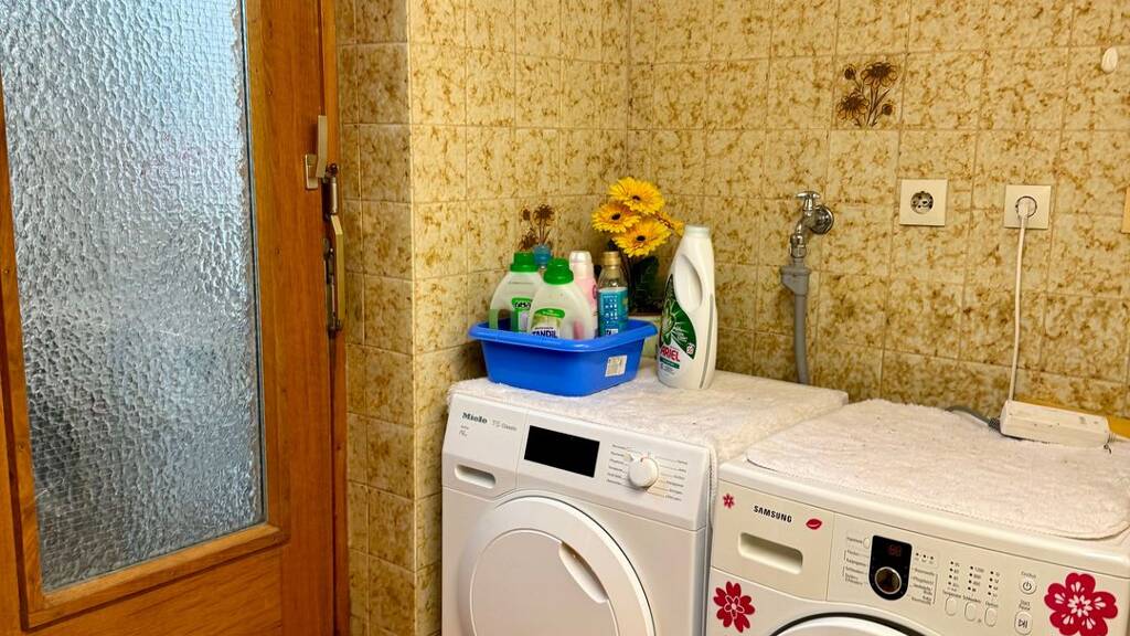 Der großzügige Keller bietet viel Stauraum, einen Waschraum mit Badewanne und Anschlüssen für Waschmaschine und Trockner sowie einen praktischen Seiteneingang, über den Sie direkt in den Garten gelangen. Die Fenster wurden bereits durch moderne, doppelt verglaste Kunststofffenster ersetzt.
