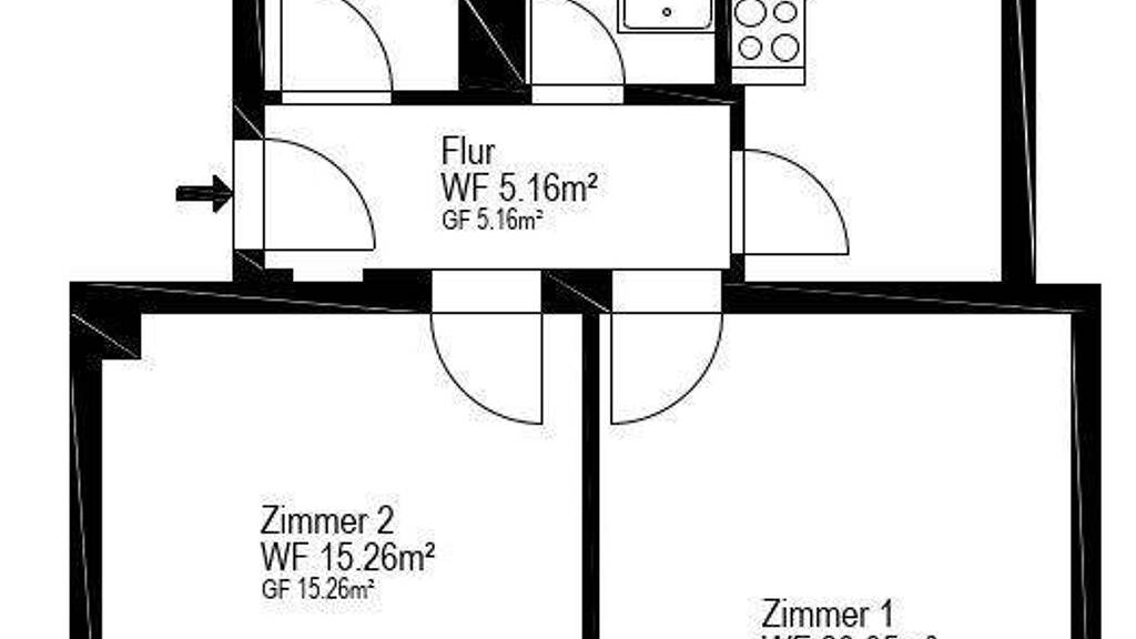 Nutzfläche: 63,29 m², Anzahl der Schlafzimmer: 1, Anzahl der Badezimmer: 1, Anzahl Balkone: 1, Distanz zum Kindergarten: 0.50, Distanz zur Grundschule: 0.75, Distanz zur Realschule: 1.50, Distanz zum Gymnasium: 2.30, Distanz zur Autobahn: 9.10, Distanz vom Zentrum: 15.20