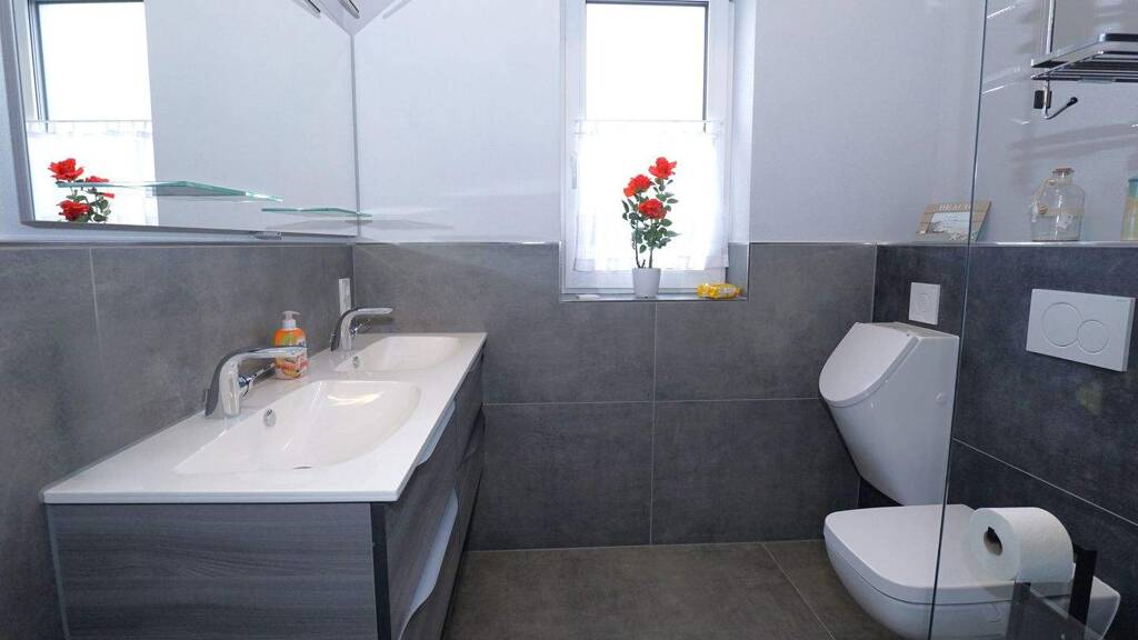 Fußbodenheizung im gesamten Haus Moderne Wärmepumpe Ca. 12 kWp Photovoltaikanlage Hohe Decken für ein großzügiges Raumgefühl Hochwertige Einbauküche Bodengleiche Dusche Doppelgarage Ca. 5 Außenstellplätze Barrierefreie Bauweise Hochwertiger Vinylboden, schöne Fliesen in den Bädern als auch im HWR