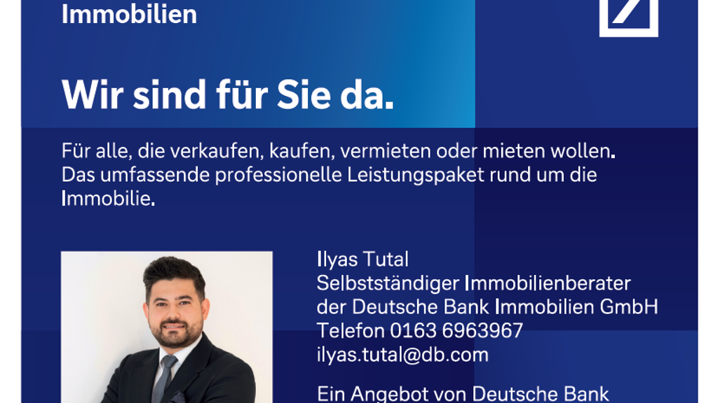 Verkaufswunsch / Kostenfreie Wertermittlung: Möchten Sie Ihre Immobilie verkaufen oder wünschen Sie eine fundierte, marktgerechte und kostenlose Wertschätzung Ihrer Immobilie? Als kompetenter, bankengebundener Immobilienberater der Deutschen Bank Immobilien GmbH bin ich Ihr erster Ansprechpartner. Ich freue mich darauf, Sie persönlich kennenzulernen und stehe Ihnen jederzeit gerne für ein unverbindliches Gespräch zur Verfügung.