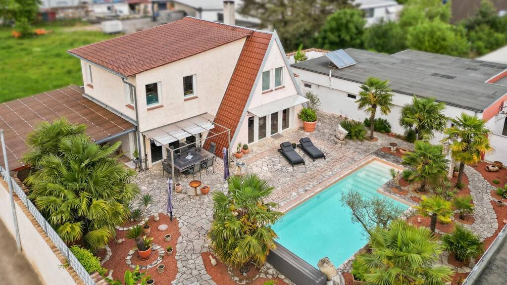 Willkommen zu einer außergewöhnlichen Immobilie, die luxuriöses Wohnen mit unternehmerischer Nutzung in perfekter Harmonie vereint. Auf einem ca. 1.927?m² großen Grundstück erwartet Sie ein freistehendes, hochwertig saniertes Wohnhaus mit Poollandschaft, stilvoller Ausstattung und durchdachter Raumaufteilung - ergänzt durch zwei großzügige Hallen mit Büro- und Sozialräumen für vielfältige gewerbliche Nutzung.