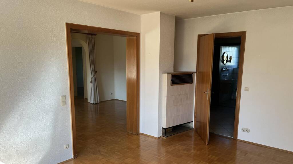 Heizung: Öl-Kachelofen; Gas-Therme für Warmwasserbereitung Fenster: Kunststoffisolierverglasung mit Rollläden Böden: Parkett, Fliesen Balkon mit Markise Einbauküche mit E-Geräten Einzelgarage