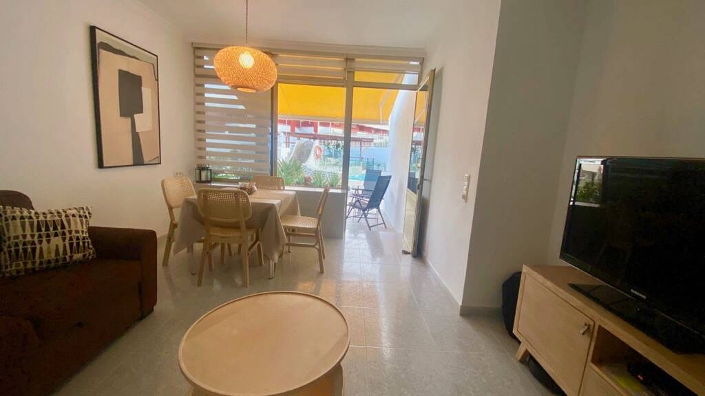 Dieses Apartment wurde kürzlich renoviert und hat direkten Zugang zum Gemeinschaftspool. Die Strandpromenade liegt ca. 100m entfernt und das Einkaufszentrum Cita ist ca. 3 Gehminuten entfernt. Grosser Wohn-Essbereich (Sat-TV,W-lan), kleine separate Küche, 1 Schlafzimmer und ein Badezimmer mit Dusche. In dieser ruhigen, kleinen Anlage befindet sich ein Gemeinschaftspool in einem kleinen Garten.