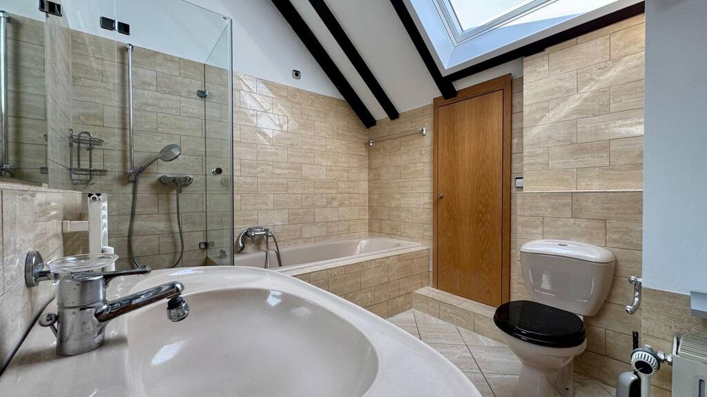 Komfortabel: Das stilvolle Tageslichtbad im „en suite“-Stil mit direktem Zugang vom Schlafzimmer bietet Ihnen Dusche, Badewanne, Marmorflächen und einen Waschmaschinenanschluss – ein Rückzugsort mit Spa-Charakter.