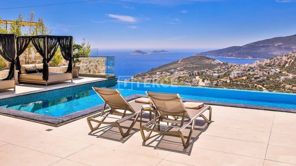 Villa in Kalkan mit türkischem Bad, Sauna, drei Pools und eigenem Büro zu verkaufen & 13 Mit seiner weltberühmten türkisfarbenen Küste und seiner einzigartigen architektonischen Struktur ist Kalkan eines der prestigeträchtigsten Urlaubsziele am Mittelmeer. Insbesondere das Gebiet Kiziltas, bekannt für seine Höhenlage und den Panoramablick auf das Meer, bietet frische Luft und eine gut ausgebaute Infrastruktur, was es zum Mittelpunkt luxuriöser Wohnprojekte macht an. Die Region dient als erstklassiges Wohngebiet für lokale und internationale Käufer, die Ruhe suchen, sowie als sichere Investition mit hohem Mietertragspotenzial. & 13 Villa zu verkaufen, in Kalkan die sich 2,1 km vom Stadtzentrum entfernt befindet. Das Gesundheitszentrum von Kalkan ist 2,4 km entfernt, und der nächste Strand, der öffentliche Strand von Kalkan, ist 3 km entfernt. Historische Stätten wie der Kaputas-Strand sind 7 km entfernt, und die antike Stadt Patara ist 17 km entfernt. Für umfassendere medizinische Versorgung ist das staatliche Krankenhaus von Kas 27 km entfernt. Der nächste Flughafen, der Flughafen Dalaman, ist etwa 120 km entfernt. & 13 Diese Luxusvilla befindet sich in der prestigeträchtigsten Lage von Kiziltas und bietet einen Panoramablick auf das Meer sowie außergewöhnlichen Wohnkomfort dank hochwertigster Materialien. Die preisgekrönte, maßgefertigte Treppe verleiht dem Gebäude architektonischen Wert, während hochwertige Geräte in Küche, Bädern und Wohnbereichen für maximalen Komfort sorgen. Die Villa verfügt über 4 Schlafzimmer, jedes mit eigenem Bad, sowie drei Pools: einen Außenpool, einen Innenpool und einen Dachpool mit Whirlpool. & 13 Im Außenbereich schaffen großzügige Liegeflächen und eine private Bar einen lebendigen Treffpunkt. Die Villa ist komplett ausgestattet mit einem türkischen Bad, einer Sauna, einem professionellen Kinoraum und einem Spielzimmer. Darüber hinaus sorgt der separate, große Büroraum, der in einen Fitnessraum umgewandelt werden kann, für zusätzliche Flexibilität. Diese Immobilie ist eine sorgfältig gestaltete, einzigartige Gelegenheit sowohl für eine renditestarke Investition als auch für ein prestigeträchtiges Wohnen.& 13 AYT-04927