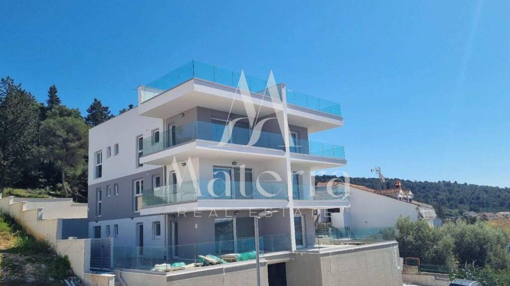 Die Luftentfernung des Gebäudes zum Meer beträgt 150 Meter und 200 Meter zu Fuß oder mit dem Auto. Das Gebäude ist gut mit allen wichtigen Orten in der Stadt Trogir verbunden: Die alte Brücke ist 10 Minuten zu Fuß entfernt, der internationale Flughafen Split ist 10 Minuten mit dem Auto entfernt, der Busbahnhof ist 5 Minuten zu Fuß entfernt, Geschäfte sind 5 Minuten zu Fuß entfernt und der Strand ist 5 Minuten zu Fuß entfernt. Das Gebäude ist nach Süden ausgerichtet, den ganzen Tag sonnig und bietet einen schönen Blick auf die Bucht, das offene Meer, Okrug, die Insel Solta und andere Sehenswürdigkeiten. Das Gebäude hat 6 Wohnungen und befindet sich in einer Sackgasse mit wenig Verkehr und Lärm, und hinter dem Gebäude befindet sich Grün und Wald, was zusätzlich zur Lebens- und Erholungsqualität beiträgt.