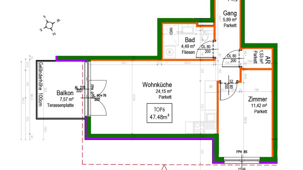 TOP 6: ca. 47,50 m² (2 Zimmer) + Balkon ca. 7,57 m², Kaufpreis: EUR 329.000