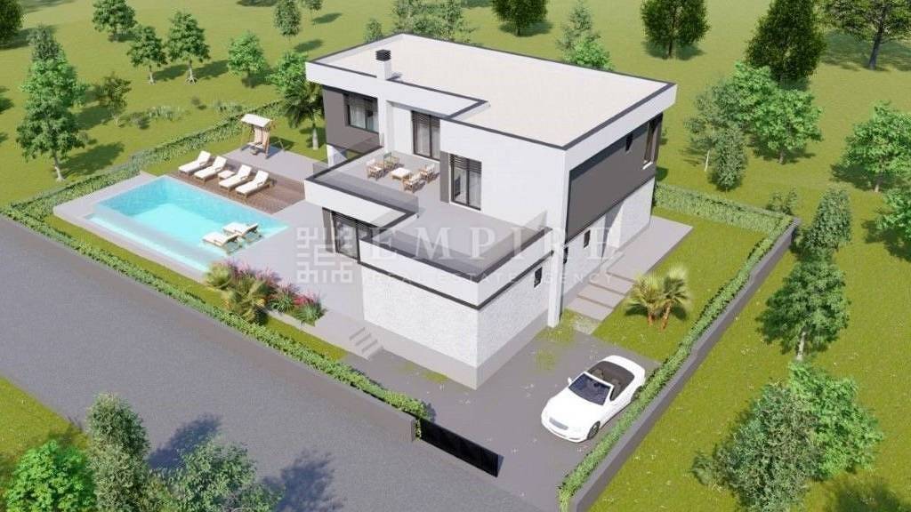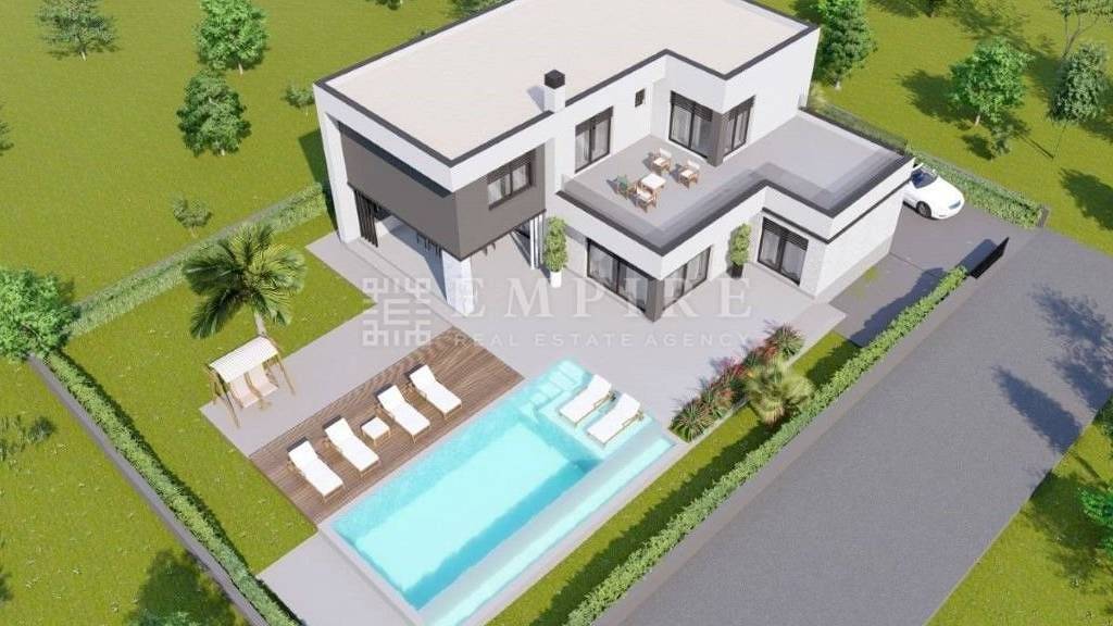 Zum Verkauf steht eine luxuriöse Villa mit Überlaufpool, großen Terrassen und weitem Blick auf Velebit, Ucka und Cres. Umgeben von unbebauten landwirtschaftlichen Flächen mit Olivenhainen bietet diese Villa eine einzigartige Lage, die neben dem Luxus des Hauses auch Ruhe und Erholung in der natürlichen Umgebung bietet. Die Villa ist derzeit im Bau und wird bis zur Verlegung der Fußbodenbeläge und Fliesen verkauft.