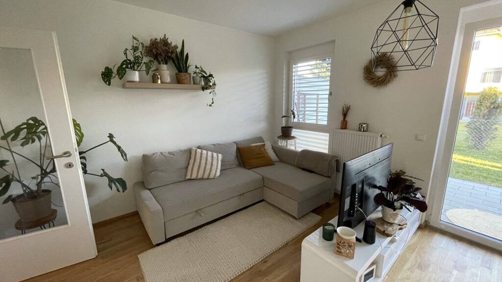 Der Vorraum bietet genügend Platz für Garderobe und Schränke, Badezimmer mit ebenerdiger Dusche und WC, ein Zimmer, eine helle Wohn- Essküche mit hochwertiger Tischlerküche und Zugang auf den Balkon. Raffstore, Parkettböden vervollständigen die hochwertige Ausstattung der neuwertigen Immobilie.