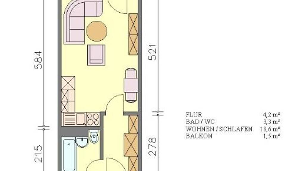 Die Wohnung verfügt über einen Wohnraum mit Südbalkon.