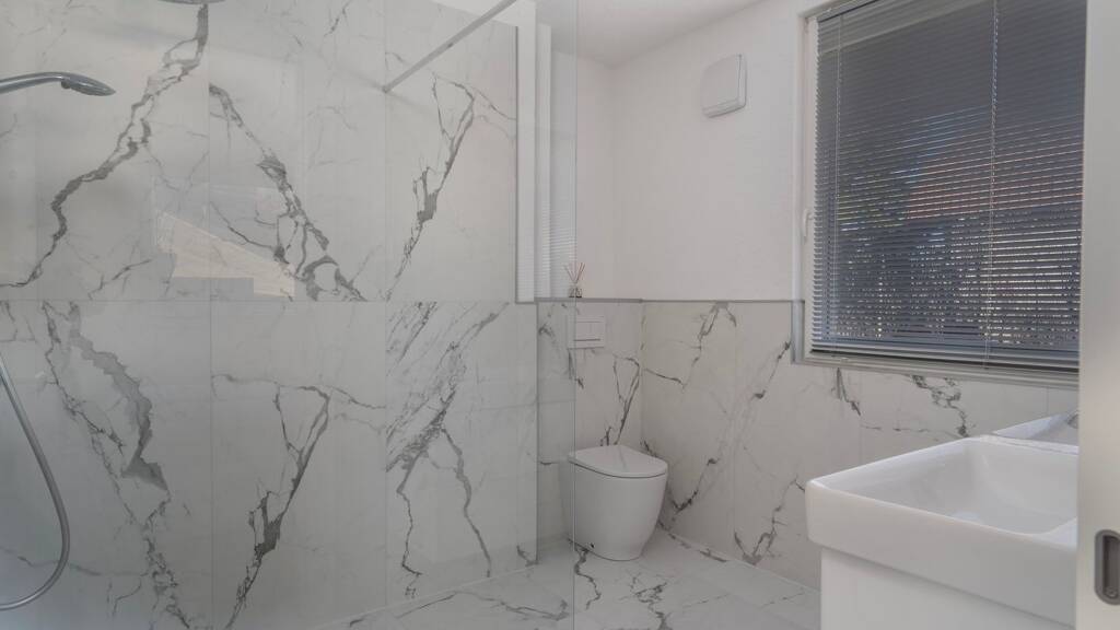Die Immobilie verfügt über 160 m2 Wohnfläche und insgesamt fünf Zimmer. Im Erdgeschoss befindet sich ein heller, offener Wohnbereich mit direktem Zugang zur großen Terrasse mit Panoramablick, ein Schlafzimmer mit begehbarem Kleiderschrank und eigenem Bad, Waschküche, Speisekammer und ein Gäste-WC. Das Obergeschoss bietet drei weitere Schlafzimmer und ein zweites Badezimmer.