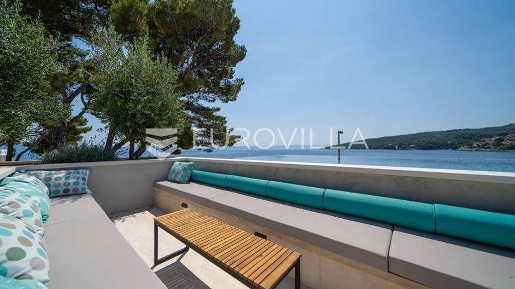 Brac, moderna vila smjestena na prekrasnoj poziciji 1. red uz more. Polozena na zemljistu od 1100 m2. Vila se sastoji od dvije etaze svaka od cca 150 m2 te je podijeljena u dva dijela.Prvi dio se sastoji od kuhinje, dnevnog boravka i kupaonice u prizemlju te 3 spavace sobe i dvije kupaonice na katu. Sobe imaju izlaz na terasu od 30 m2. Iz svih prostorija se pruza pogled na more.U drugom dijelu kuce (roh bau) se nalaze tri prostorije koje sluze kao podrum, a na katu kojem se pristupa vanjskim skalama nalazi se odvojeni apartman koji se sastoji od kuhinje, dnevnog boravka te dvije spavace sobe i dvije kupaonice. Apartman je izvornom stanju i trebalo bi ga preurediti i renovirati.Postoji mogucnost otkupa zemljista sa straznje strane vile.Ispred vile se nalazi terasa od cca 200 m2 i preljevni bazen od 40 m2.Ostale informacije na upit.... Vise na eurovilla.hr, ID: 240132