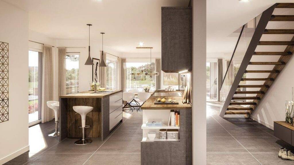 .Natürliche Materialien: Hochwertige, gesunde und natürliche Baustoffe schaffen eine warme und einladende Atmosphäre. .Lichtdurchflutete Räume: Große Fensterflächen sorgen für eine optimale Nutzung von natürlichem Licht und schaffen eine offene, luftige Umgebung. .Durchdachte Raumgestaltung: Die klare und funktionale Raumaufteilung ermöglicht eine flexible Nutzung und schafft ein harmonisches Gleichgewicht. .Sicherheitssystem: Modernste Sicherheitstechnologien, einschließlich Überwachungskameras und intelligenter Türschlösser, bieten ein beruhigendes Gefühl der Sicherheit.