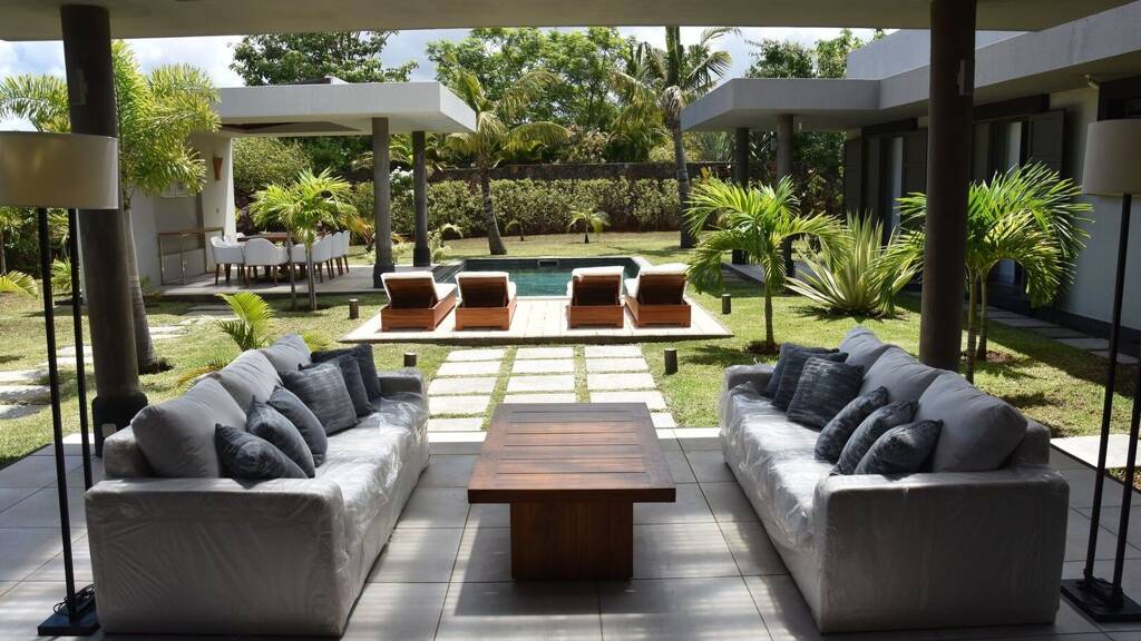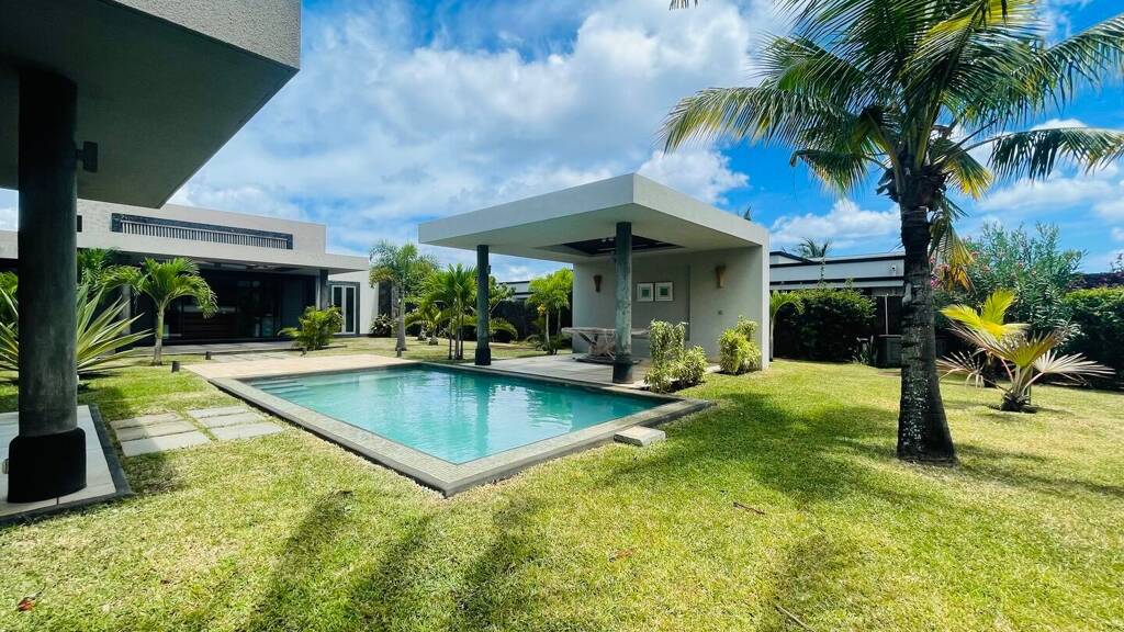 Eingebettet in eine intime Umgebung in einer wunderschönen, sicheren Residenz in Balaclava, nahe Geschäften, Luxushotels und nur wenige Minuten von den Stränden entfernt, verführt diese prächtige einstöckige Villa mit ihrer harmonischen Mischung aus Modernität und Eleganz. Das auf das Leben im Freien ausgerichtete Konzept bietet eine privilegierte Wohnumgebung unter den Tropen. Diese Charaktereigenschaft zeigt ihren ganzen Charme von außen. Am Eingang empfängt Sie ein eleganter Brunnen und führt zu einem großen Carport, der mehrere Fahrzeuge aufnehmen kann. Hinter der Villa als Entspannungsbereich fügt sich ein wunderschönes Salzwasserbecken harmonisch in einen großen, großzügigen und perfekt gepflegten Garten ein. Ein Pavillon vervollständigt diesen Außenbereich und ist ideal, um gesellige Momente mit Familie oder Freunden zu teilen und dabei eine friedliche und intime Umgebung zu genießen. Beim Betreten fällt der Blick auf ein großes Erkerfenster, das einen beruhigenden Blick auf die umliegende Vegetation bietet, bevor man einen angenehmen Wohnraum mit schönen Räumen und hohen Decken entdeckt. Große Schiebetüren aus Glas öffnen sich zu einer geräumigen Veranda, die den Raum mit natürlichem Licht fluten und eine perfekte Kontinuität zwischen Innen- und Außenbereich schaffen. Die halboffene Küche, voll ausgestattet und geschickt arrangiert, fügt sich harmonisch in den Wohnraum ein. Es reicht in einen funktionalen Hauswirtschaftsraum und bietet viel Stauraum für ein praktisches tägliches Leben. Der rechte Flügel der Villa öffnet sich zu einer angenehmen TV-Lounge, die je nach Bedarf auch in ein Büro oder einen vielseitigen Raum umgewandelt werden kann, bevor sie zum Schlafbereich führt. Diese besteht aus vier Schlafzimmern mit eigenem Bad, von denen drei direkten Zugang nach draußen haben. Die Master-Suite verfügt über ein Umkleidezimmer sowie ein elegantes Badezimmer mit Badewanne, einer Doppeldusche und einer Außendusche - ideal, um die tropische Kunst des Lebens voll zu genießen. Eine Waschküche vervollständigt die Merkmale dieses Luxusanwesens. Diese Villa wird Sie mit ihrer privilegierten Lage, ihrer friedlichen Atmosphäre und sorgfältigen Dekoration verführen. - Generator - Motorisiertes Tor - Fensterläden und Klimaanlage in allen Räumen - Alarmanlage - Eigentumsgebühren: ca. 4.000 MUR pro Monat