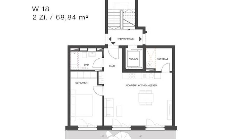 Eine herrlich lichtdurchflutete, offene 2-Zimmer-Wohnung mit echten 62 m² Wohnfläche – #15 im 1. OG bzw. #18 im 2. OG von Haus KIENBACH.