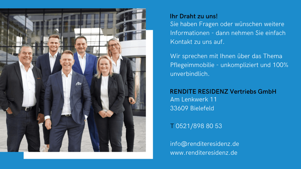 Ablauf der Beratung: In der Beratung ermitteln wir die wirtschaftlichen Grundlagen und legen gemeinsam mit Ihnen die Investitionsgröße fest. Dann wählen Sie den Standort und das Objekt aus, zu dem wir eine Wirtschaftlichkeitsberechnung durchführen. Wir reservieren die von Ihnen gewünschte Einheit und führen mit Ihnen auf Wunsch eine Besichtigung durch. Wenn alles passt, helfen wir bei der Finanzierung und fordern den Kaufvertragsentwurf an. Wir begleiten Sie falls notwendig zum Notartermin und führen mit Ihnen die Abnahme und Übergabe der Immobilie durch. Die Erstvermietung Ihrer Immobilie übernimmt in der Regel der Verwalter.