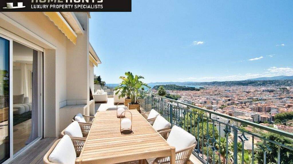 Perched on the top floor of a prestigious residence in the sought-after Mont Boron / Mont Alban district, this exceptional 167.33 m2 penthouse has been fully renovated to the highest standards and offers 123 m2 of wraparound terraces facing East, South, and West - delivering uninterrupted panoramic views over the city of Nice and the sparkling Mediterranean.