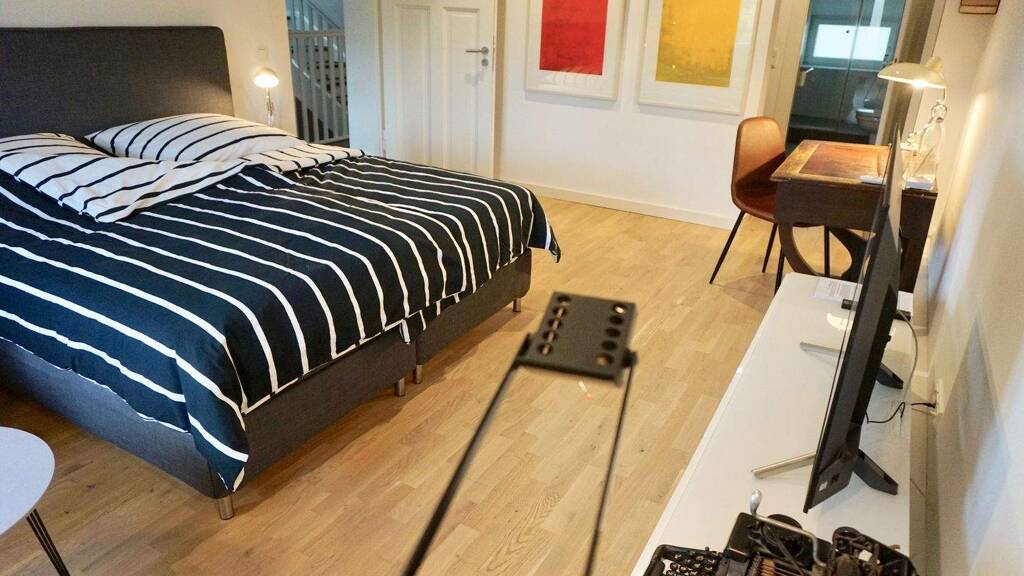 An einer ruhigen reinen Anwohnerstraße, in Düsseldorfs bester Wohnlage, liegt der kernsanierte Altbau in dem drei Gästezimmer unterschiedlicher Größe zur Vermietung angeboten werden. Die Zimmer sind alle klimatisiert und haben alle ein eigenes Bad. Die Zimmer können zusammen oder einzeln angemietet werden. Die Zimmer sind alle sehr individuell gestaltet. Eine geschmackvoll eingerichtete Gästeküche lädt auch zum Verweilen und zum Austausch mit anderen ein. Für sonniges Relaxen steht Ihnen im Garten ein Sitzbereich und eine Gartenliege zur Verfügung. Es gibt im Keller eine Waschküche in der eine Waschmaschine und ein Wäschetrockner den Gästen zur Verfügung stehen. Bei Bedarf können auch Fahrräder vermietet werden. Alle Geschäfte des täglichen Bedarfs wie auch der öffentliche Nahverkehr sind fußläufig (5 Min.) zu erreichen (Benderstraße). Eine große Fitness-Anlage befindet sich ebenfalls fußläufig. Die Immobilie liegt in direkter Waldnähe.