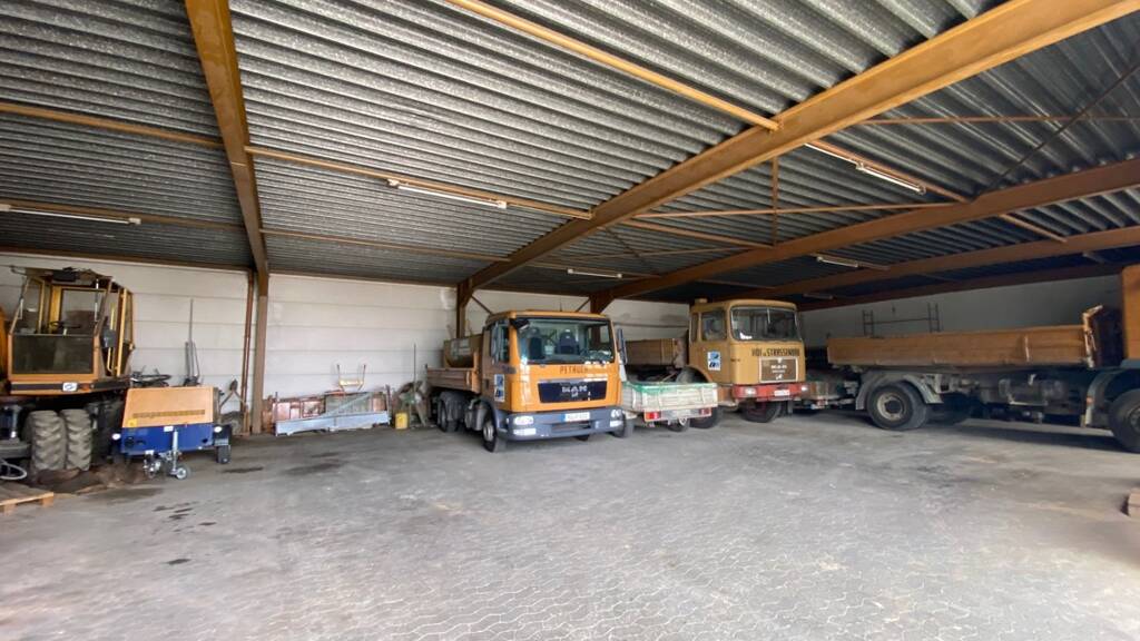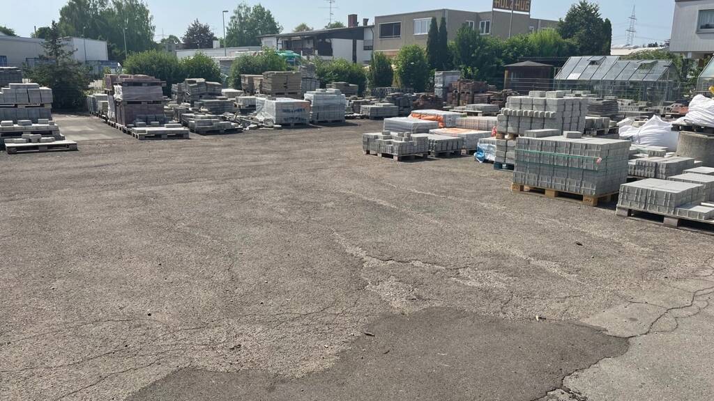 Die befestigte Freifläche (überwiegend Asphaltiert, teilweise Verbundpflasterbelag) von rund 4.550 m² ist vollständig umzäunt und verfügt über eine elektronisch gesteuertes Flügeltor mit 5,5 m Breite. Die Anbindung an die B 28 und von dort zu den Bundesautobahnen A8 und A7 ist nur ca. 500 Meter entfernt und bietet eine nahezu perfekte Verkehrsanbindung. Die Grundstückszufahrt ist ohne Einschränkungen gewährleistet.