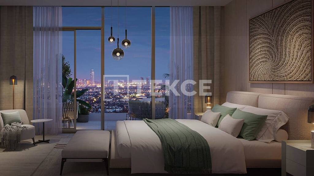 Das Projekt zeichnet sich durch eine raffinierte architektonische Identität aus, die vom japanischen Design inspiriert ist und klare Linien, Symmetrie und eine nahtlose Integration von Innen- und Außenbereich in sechs Wohnhochhäusern und Podium-Reihenhäusern vereint. Das Äußere besticht durch eine harmonische Balance zwischen Form und Funktion, wobei die sternenklare Fassadenbeleuchtung die ruhige Atmosphäre bei Tag und Nacht unterstreicht. Umgeben von üppiger Landschaftsgestaltung und einem zentralen Serenity Lake bietet die Anlage einen Panoramablick auf die Jumeirah Islands und die Skyline von Dubai. Die Bewohner genießen einen gehobenen Resort-Lifestyle, der durch sechs unterschiedliche Lifestyle-Zonen unterstützt wird: ein hochmodernes Clubhaus mit Endlospool, Dachterrasse mit Café, Spa-Einrichtungen, Indoor-Paddle- und Basketballplätzen sowie einem Spielzimmer; eine Gesundheits- und Sozialzone mit Sportbecken, Grillplätzen, Gärten und ruhigen Wasserspielen; einen Sport- und Freizeitbereich mit einem 1 km langen Aktivpfad, Mehrzweckplätzen und offenen Rasenflächen; eine Familienoase mit Pools, schattigen Lounges und Außenduschen; eine Naturentdeckungszone mit Baumhäusern und interaktiven Wasserspielplätzen; und einen Wellness-Rückzugsort mit Yoga-Decks, Meditationsgärten und Aussichtspavillons. Jedes Detail dieser 600.000 Quadratmeter großen Wohnanlage ist darauf ausgelegt, Wellness, Verbundenheit und ein raffiniertes Leben in einer Oase am See zu fördern.
