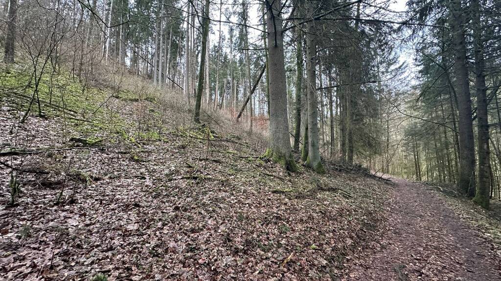 Die Nord-West-Grenze sind eine Quelle und Quellbachlauf sowie der Eichweg. Die Waldfläche hat einen lichten Bewuchs mit Fichten und Buchen. Absolut idyllisch sind die Quelle und der Quellbach. Hier steht eine Bank zum Verweilen - absoluter Ruhepol garantiert.