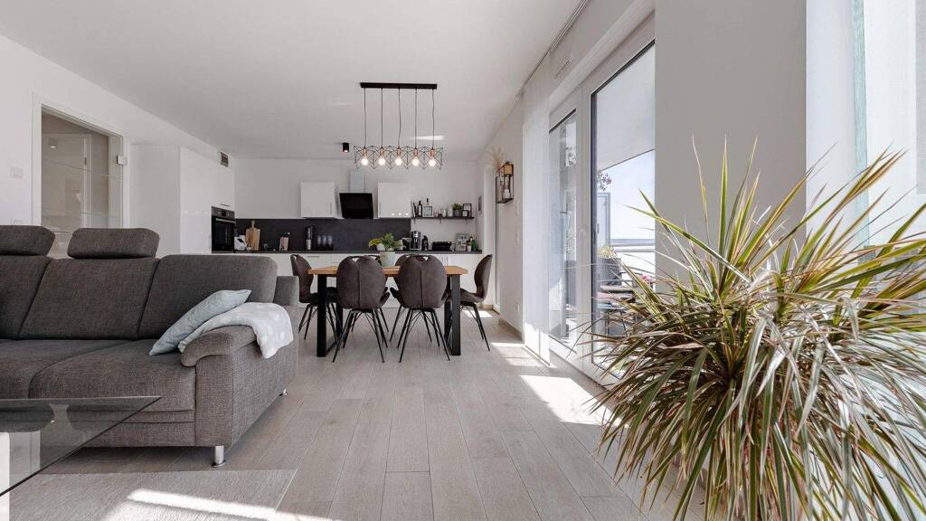 Der offene Wohn- und Essbereich mit raumhohen Fenstern und Zugang zu Balkon oder Terrasse ist das Highlight einer jeden Wohnung. Doch aufgepasst: Es bleibt Raum für individuelle Gestaltung, damit ein persönliches Zuhause entstehen kann.
