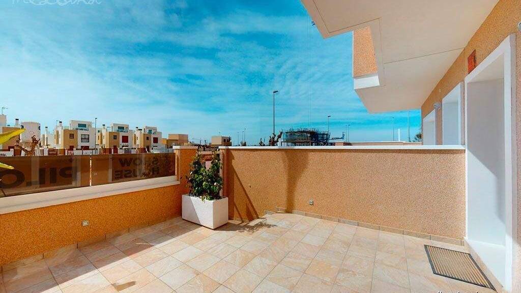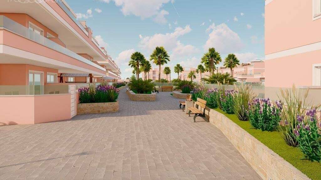 Exklusives Wohnkomplex in Pilar de la Horadada, dem südlichsten Ort an der Costa Blanca. Dieser Ort bietet eine Mischung aus traditionellem spanischem Charme und allen Arten von Dienstleistungen, wie Supermärkten, Geschäften, Bars, Restaurants und Freizeitaktivitäten. Liebhaber von Outdoor-Aktivitäten finden eine große Auswahl, mit 4 renommierten Golfplätzen in der Umgebung, einer städtischen Sportanlage und unberührten Stränden sowie Marinas an der Küstenzone Torre de la Horadada. Die Reise entlang der Costa Blanca und der Costa Cálida ist dank des ausgezeichneten Straßennetzes schnell und bequem. Der Flughafen Murcia ist nur 40 Minuten entfernt und der Flughafen Alicante etwa eine Stunde. Entworfen für Luxus und Komfort bietet das Resort Wohnhäuser mit 3 Schlafzimmern, geräumigen Wohnzimmern und großen Außenbereichen, alles in einer sonnigen Umgebung mit über 300 Sonnentagen pro Jahr. Die Wohnhäuser sind in verschiedenen Modellen erhältlich: Erdgeschosswohnungen mit Garten, ideal für mehr Außenbereich, Wohnungen in der Mittelgeschossetage mit Terrasse, die Privatsphäre im Freien gewährleisten, Penthäuser mit privater Dachterrasse, perfekt, um das ganze Jahr über die Sonne zu genießen, Doppelhaushälften mit zwei Etagen, Garten und privater Solariumbereich, ideal für große Familien. Im Herzen des Komplexes befindet sich eine zentrale Zone mit einem schönen Garten, zwei großen Becken für Erwachsene und Kinder, mediterrane Gärten und Erholungsbereiche sowie ein Spielplatz. Es gibt eine Tiefgarage für Wohnungen ohne zugehörigen Parkplatz. Die Häuser sind mit modernen Oberflächen und hochwertigen Materialien ausgestattet, inklusive Vorinstallation einer zentralen Klimaanlage, Einbauschränken und einem Stellplatz. Abhängig von der Bauphase können diese Häuser angepasst werden, um allen Geschmäckern mit einer breiten Palette von Optionen gerecht zu werden. Genießen Sie das Beste des mediterranen Lebens in einer sicheren Umgebung, in Strandnähe und mit einer großen Vielfalt an Dienstleistungen.