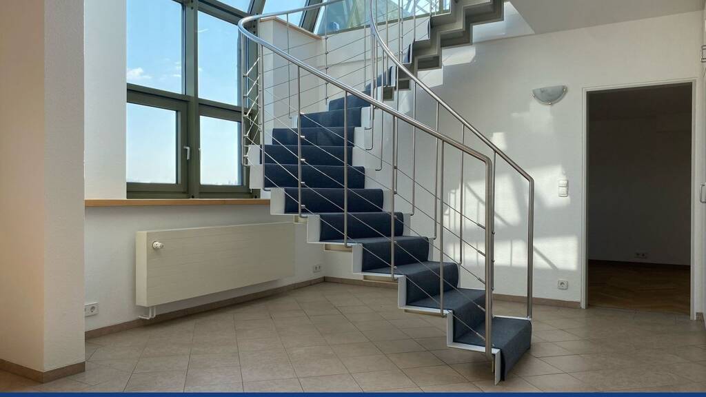 Die großzügige Wohnung bietet ca. 225 qm reine Wohnfläche auf 6 Zimmern und 2 Geschossen und damit viel Platz für individuelle Gestaltungsmöglichkeiten und einen außergewöhnlichen Freiraum für die zukünftigen Bewohner. Das Wohngebäude wurde im Jahr 1970 erbaut, während das Dachgeschoss mit den Penthousewohnungen erst nachträglich im Jahr 1995 aufgesetzt wurde.