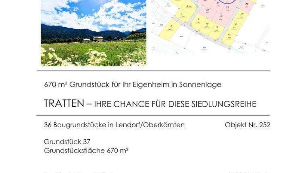Mitten im Grünen und doch zentral: In der sonnigen Trattensiedlung in der Gemeinde Lendorf entstehen auf rund 2,5 ha Bauland insgesamt 36 attraktive Baugrundstücke, ideal für junge Familien, Naturliebhaber und alle, die ihr Eigenheim mit Weitblick verwirklichen möchten.