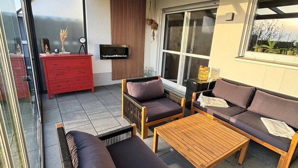 Zusätzlich verfügt die Wohnung über eine große Terrasse sowie einen eigenen Gartenanteil, der zum Entspannen im Freien einlädt.