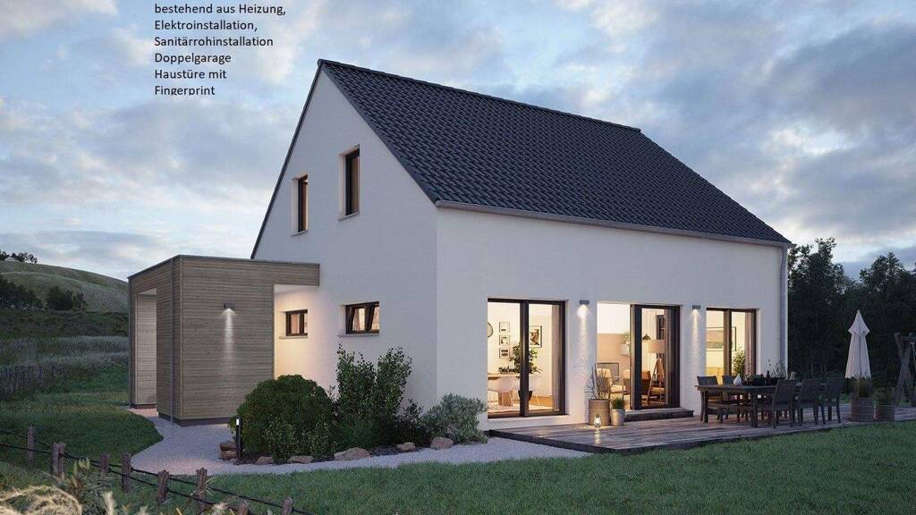 Im Angebot enthalten ist das Ausbauhaus, Technikpaktet mit Wärempumpe, Fußbodenheizung, kontrollierter Be- und Entlüftungsanlage, Elektroinstalation, Sanitärrohinstallation, Material für Dämm- und Beplankung, Haustüre mit Fingerprint, Architektenleistung, Aufbau, Statik, Transport, Versicherungsschutz, Bauleitung, elektrische Rolläden.