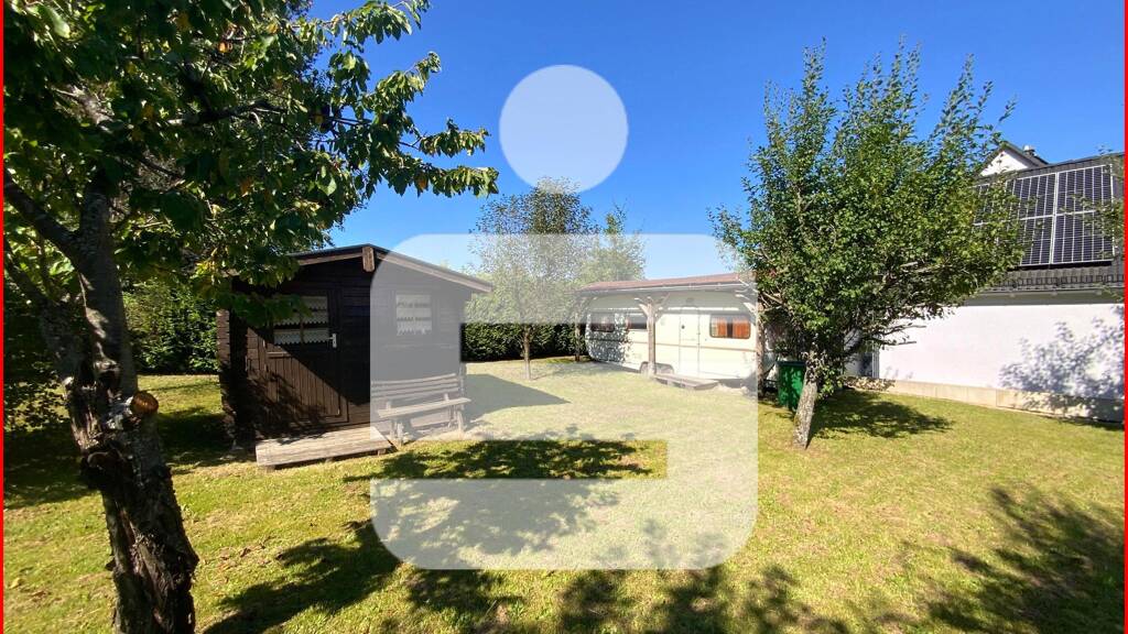 Das 999 m² große Grundstück ist eine Baulücke, auf der aktuell lediglich eine "Doppelgarage", ein Gartenhaus und ein älterer Wohnwagen steht.