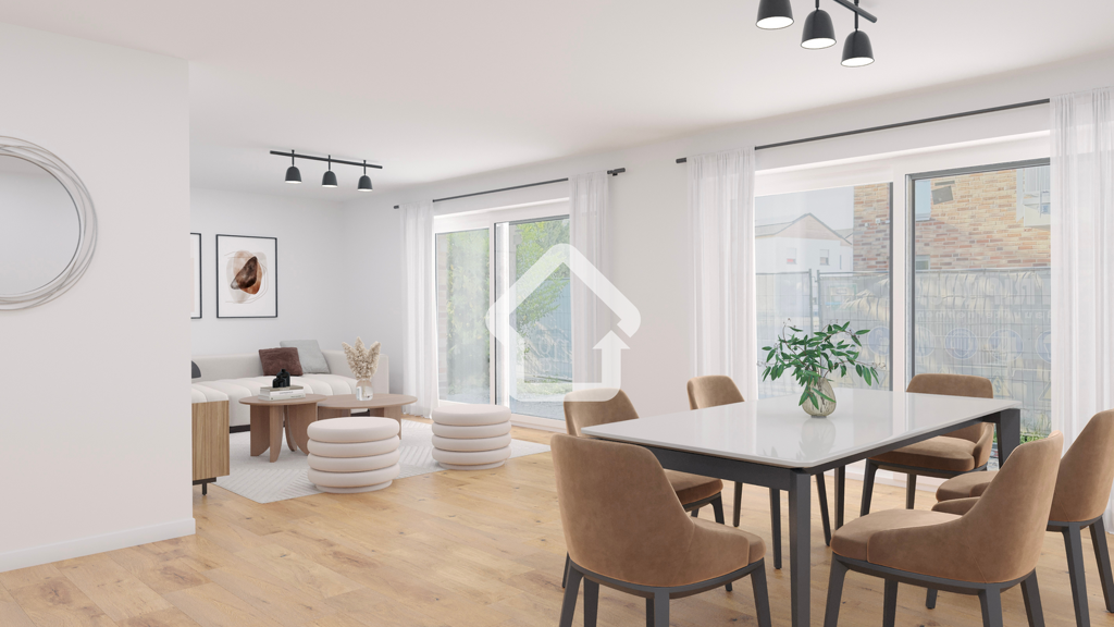 In der Wohnungen erwartet die zukünftigen Bewohner ein großzügiger Wohn-/Essbereich mit einem modern geschnittenen, offenen Küchenbereich und direktem Zugang zum Balkon oder zur Terrasse.
